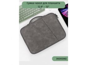 Сумка-чехол для планшета 12.9-13 дюймов, серая, экокожа, ударопрочная, с карманом 4543011422