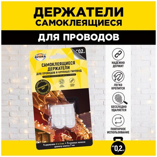Найти - Самоклеящиеся крючки/держатели для проводов/гирлянд AVIORA (4 шт. в упаковке + 5 самоклеющихся полосок)