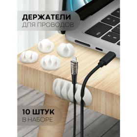 Найти - Держатель для кабелей проводов (органайзер для зарядок), Картофан, белый, 10 шт