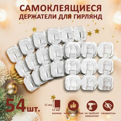 Найти - Держатель самоклеящийся для проводов и гирлянд, 15х15 мм, 54 шт.