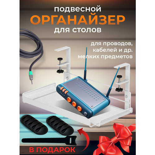 - Подвесной органайзер для компьютерных и офисных столов позволяет уложить удлинитель, роутер, сетевой фильтр, пилот и собрать все провода на рабочем месте в одном компактном пространстве. Кабель менеджер позволит красиво уложить и подвести кабели, провода и шнуры к технике, не загромождая пространство компьютерного стола. Крепление органайзера для проводов располагается под столешницей и не мешает расположить стол вплотную к стене или окну.