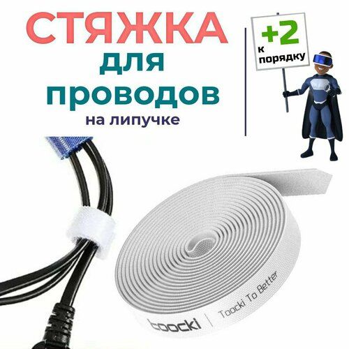 Найти - Стяжка для проводов многоразовая, на липучке. Белая