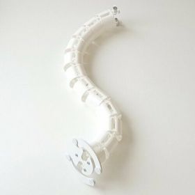 - Продукт состоит из 12 звеньев цилиндрической формы, соединенных друг с другом в цепочку, напоминающую "хребет". Каждое звено снабжено крепёжными отверстиями в нижней части, позволяющими прикрепить изделие к поверхности любого типа, расположенной под любым углом.