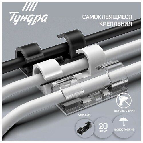 Найти - Держатель самоклеящийся для проводов и гирлянд тундра krep, 10х30 мм, цвет черный, 20 шт.