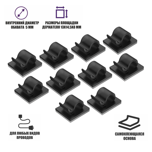 - Держатель провода черный на самоклеящейся основе - 10 шт.