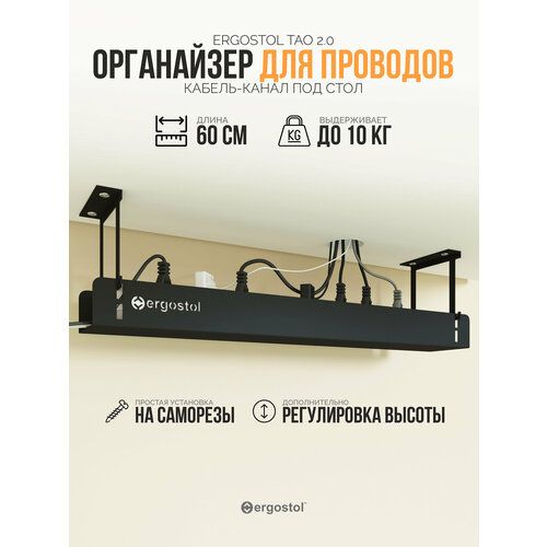 Кабель-канал под стол Ergsostol Тао 2.0 - широкий металлический лоток под провода. Также в нем можно расположить сетевой фильтр и подобное оборудование небольших размеров.