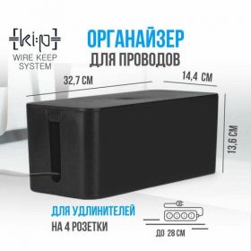 Найти - Коробка, органайзер для проводов, средний (32х13,5х13), черный, короб для маскировки сетевых кабелей и шнуров для зарядки