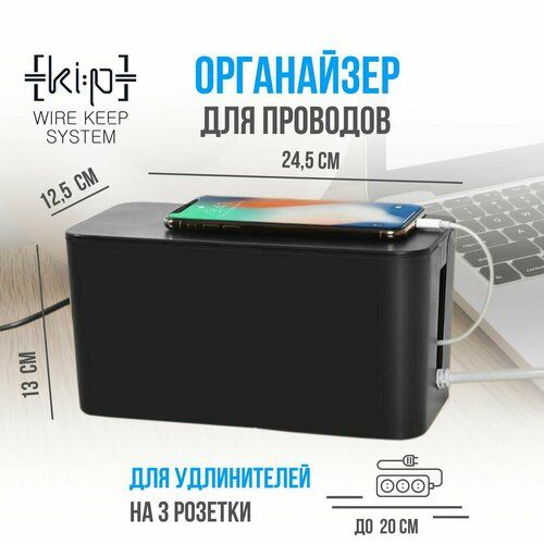 Найти - Коробка, Органайзер для проводов, малый (23,5х11,5х12), черный, короб для маскировки сетевых кабелей и шнуров для зарядки
