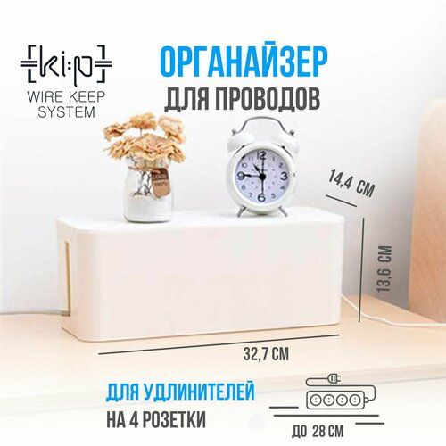 Найти - Коробка, органайзер для проводов, средний (32х13,5х13), белый, короб для маскировки сетевых кабелей и шнуров для зарядки