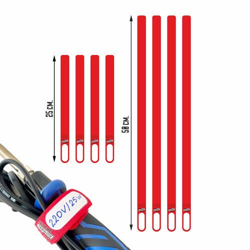 Найти - Стяжка хомут на липучке прямая (4шт. - 25см. + 4шт. 50см. Красные)