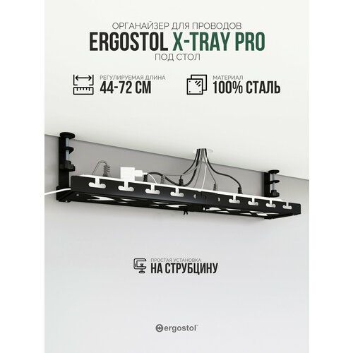 Найти - Подвесной кабель-канал Ergostol X-Tray Pro, держатель для проводов, 0.4 - 0.7 м, черный