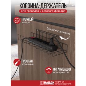Корзина поможет вам стать более организованным, позволяя быстро находить необходимые провода и зарядки, не теряя время на поиски. Это идеальный вариант для создания функционального и стильного рабочего места. Не упускайте шанс облегчить свою жизнь с помощью этого удобного органайзера для проводов и зарядок