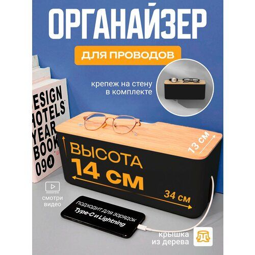 Найти - Органайзер для проводов и зарядок большой, коробка для кабеля, бокс для хранения, держатель удлинителей 34см, черный
