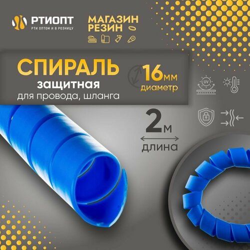 Найти - Хомут - стяжка защитная для шланга и кабеля Спираль синий, d 16 мм, 2 м/ Органайзер для проводов