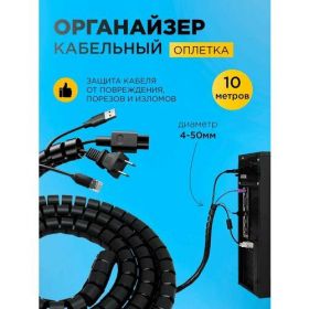 Оплетка органайзер для защиты провода 4-50 мм 10 м спиральная лента - это надежное и практичное решение для организации и защиты ваших проводов.