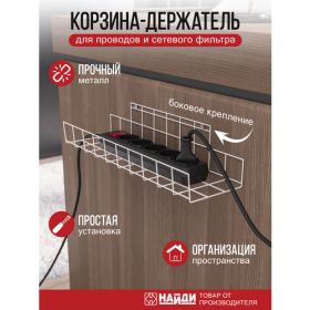 Держатель для проводов предназначен для крепления к боковой стенке стола, что позволяет вам удобно закрепить провода и зарядки, обеспечивая легкий доступ к источникам питания. С помощью этого органайзера вы сможете поддерживать чистоту и порядок на рабочем месте, предотвратить запутывание проводов, а также защитить их от повреждений.