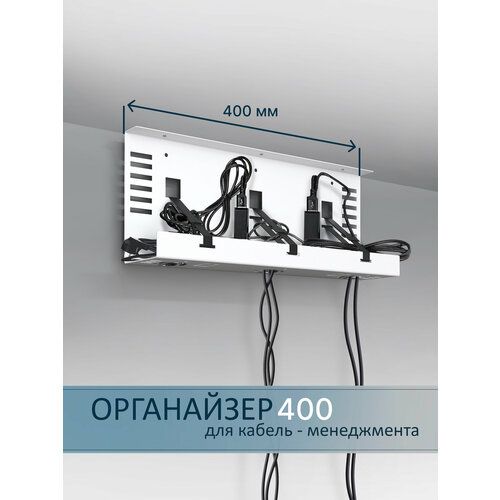 Органайзер имеет размеры 400 мм в длину и 400 мм в ширину, что позволяет разместить его под столом или в любом другом удобном месте. В комплекте идут многоразовые стяжки-липучки, которые обеспечивают надежное крепление проводов и зарядных устройств.