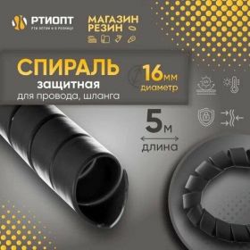 Найти - Хомут - стяжка защитная для шланга и кабеля Спираль черная d 16 мм, 5 м / Органайзер для проводов