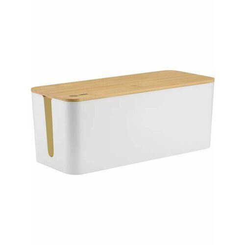 Органайзер Cactus CS-BOX-WH белого цвета с дополнительным цветом «бамбук» предназначен для хранения проводов на рабочем столе.