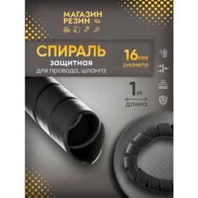 Найти - Хомут - стяжка защитная для шланга и кабеля Спираль d 16 мм, 1 м / Органайзер для проводов