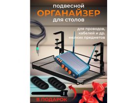 Полка органайзер для проводов и офисных аксессуаров / держатель для кабелей / сетка черный 102334695640