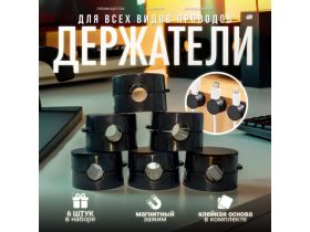 Магнитный держатель - органайзер для кабелей, проводов и зарядок самоклеящийся, 6 штук, чёрный 103594042512