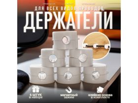 Магнитный держатель - органайзер для кабелей, проводов и зарядок самоклеящийся, 6 штук, белый 103594042511