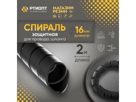 Хомут - стяжка защитная для шланга и кабеля "Спираль" черная, d 16 мм, 2 м/ Органайзер для проводов 4431434582