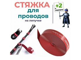Стяжка для проводов многоразовая, на липучке. Красная 102385353164