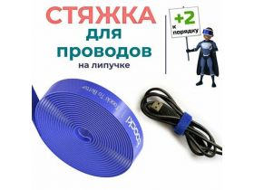 Стяжка для проводов многоразовая, на липучке. Синяя 102385338455