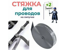 Стяжка для проводов многоразовая, на липучке. Серая 102385353162