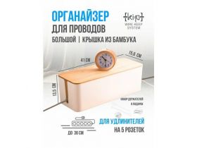 Короб органайзер для проводов большой (41х15,6х13,5), белый, бамбуковая крышка, контейнер для маскировки сетевых кабелей 103089651820