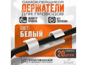 Держатель самоклеящийся для проводов и гирлянд тундра, 20 шт, цвет белый 4303566602