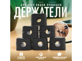 Магнитный держатель - органайзер для кабелей, проводов и зарядок самоклеящийся, 6 штук, чёрный 103263454828