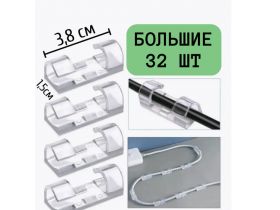 Держатели для провода большие 32 штуки / Крючки для гирлянды / Настенный крепеж самоклеящийся диаметр 1.2 см прозрачные 103633702374