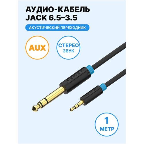 НАЙТИ ВЫГОДНЕЕ - Кабель Vention Jack 6.3 mm M - Jack 3.5 mm M (BABB), длина 1 м, 1 шт., черный
