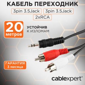 НАЙТИ ВЫГОДНЕЕ - Кабель Cablexpert mini Jack 3.5 - 2 x RCA (CCA-458), длина 20 м, 1 шт., черный