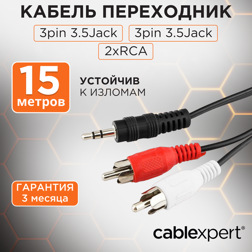 Кабель аудио Cablexpert CCA-458-15M, джек3.5 / 2xRCA, 15м