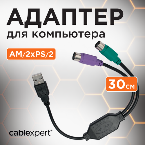 Конвертер PS/2 USB порт Cablexpert черный AM/2xPS/2 Pro 30см UAPS12-BK - это устройство, которое позволяет подключить клавиатуру и мышь с интерфейсом PS/2 к USB порту.