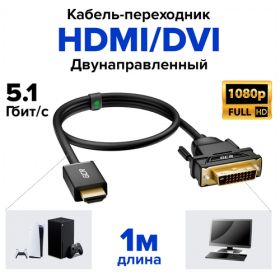 Двунаправленный кабель переходник HDMI > DVI, HDMI < DVI