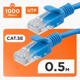 Патч-корд UTP Cablexpert синий категории 5e длиной 0.5 метров PP12-0.5M/B - это надежный и качественный кабель, предназначенный для соединения различных устройств и оборудования.