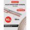 Акустический кабель REXANT применяется в сложных профессиональных аудиосистемах высокого класса, обеспечивает передачу сигнала в широком диапазоне частот, позволяет добиться чистого объемного звучания с высокой мощностью басов. Отличается высококачественными материалами: проводником выступает чистая бескислородная медь (из металла извлечены атомы кислорода, формирование проводов происходит в бескислородном пространстве), площадь сечения жил 0,75 мм2. Диаметр проводов в жилах значительно уменьшен, что также позволяет улучшить качество передаваемого звука. Внешняя оболочка выполнена из мягкого силикона, устойчивого к многократным сгибаниям и другим механическим нагрузкам. Длина кабеля 10 м.