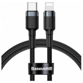 Найти - Кабель в тканевой оплетке USB-C - Lightning PD20W Baseus Cafule CATLKLF-G1, 1 м, черный-серый
