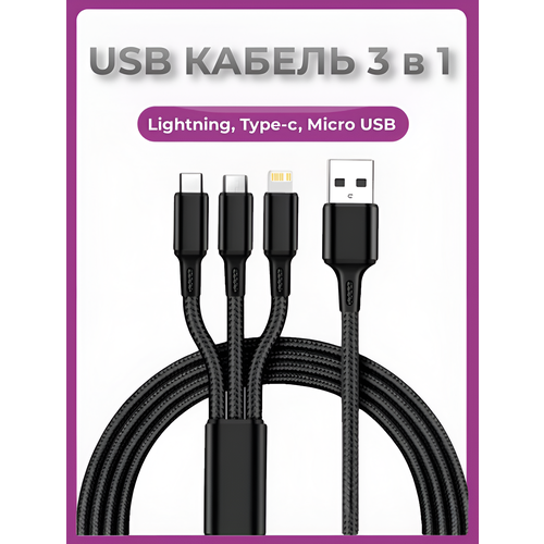 НАЙТИ ВЫГОДНЕЕ - USB кабель для зарядки 3 в 1 Lightning Type-C Micro USB черный