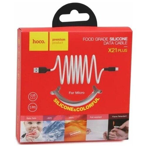 НАЙТИ ВЫГОДНЕЕ - Кабель Hoco X21 Plus, USB - MicroUSB, 2.4А, 1 м, белый