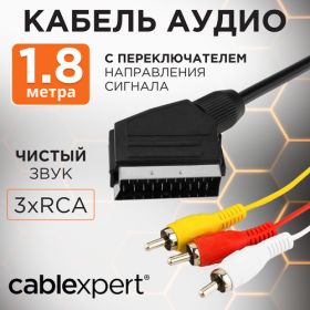Кабель аудио/видео Cablexpert SCART / 3xRCA с переключателем направления сигнала 1.8м CCV-519-001 - это высококачественный продукт от известного производителя Cablexpert.
