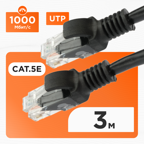 [Коммутационный шнур] Cablexpert PP12-3M/BK Патч-корд UTP кат.5e, 3м, литой, многожильный (чёрный)
