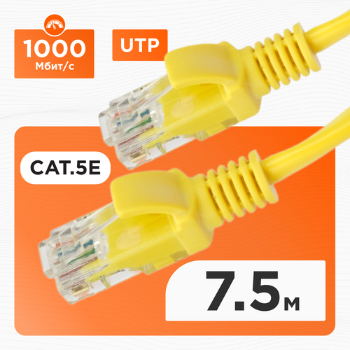 НАЙТИ ВЫГОДНЕЕ - Патч-корд Cablexpert PP12-7.5M, площадь сечения 0.13 кв. мм, длина 7.5 м, 1 шт., Желтый