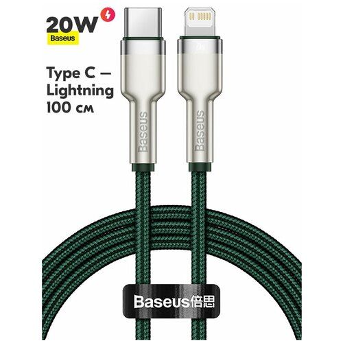 Кабель Baseus Cafule Series Metal Data Cable Type-C - Lightning PD 20W 1m Зеленый CATLJK-A06