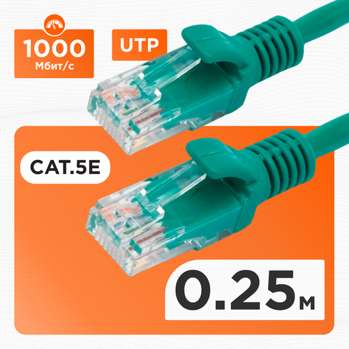 Кабель имеет категорию 5E, что обеспечивает высокую скорость передачи данных и надежность соединения. Длина кабеля составляет всего 0.25 метра, что делает его удобным для использования в ограниченном пространстве.
